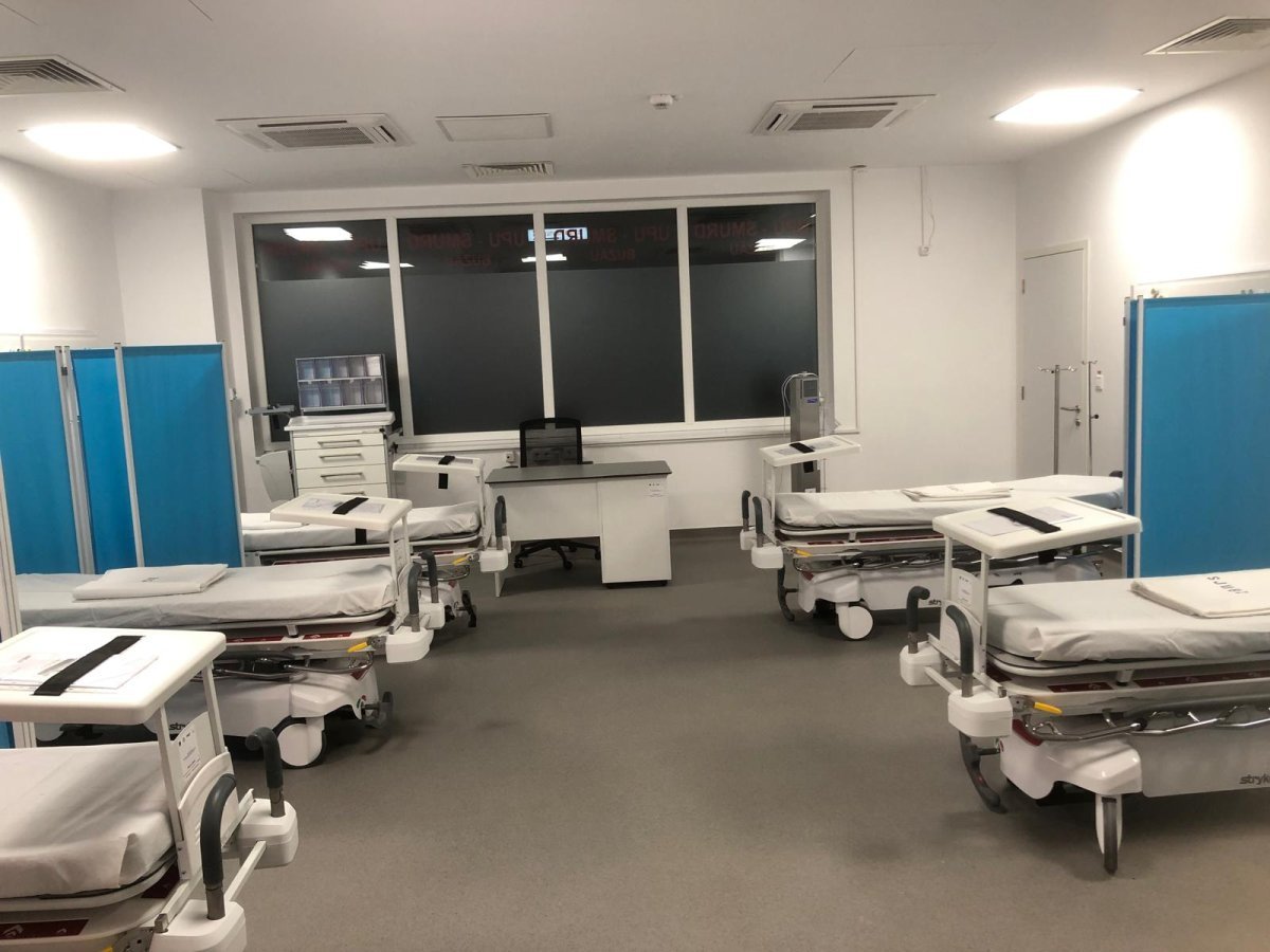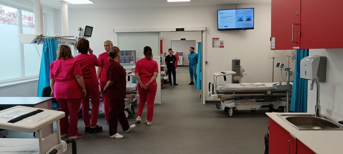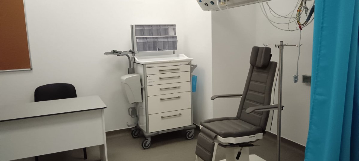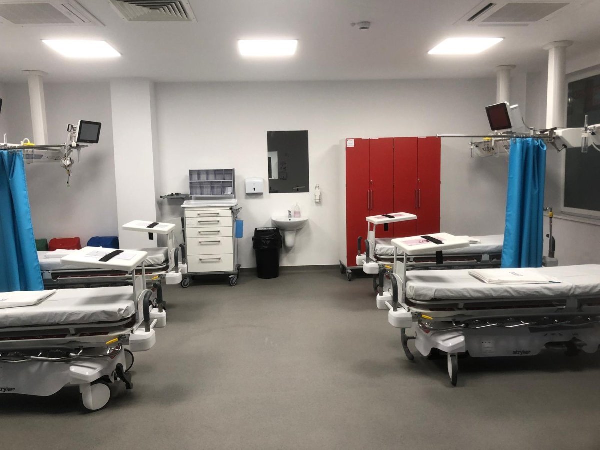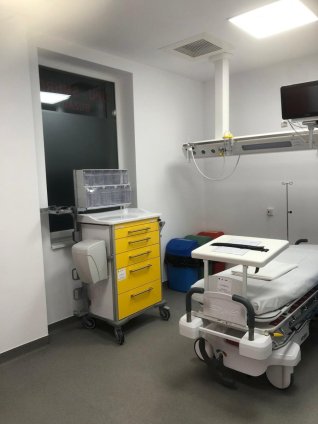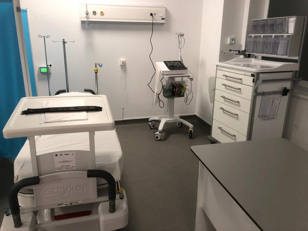 Noua secție UPU dispune de 2 monitoare de funcții vitale pentru transport, 2 defibrilatoare, 6 electrocardiografe, 1 aparat mobil de radiologie, 1 ecograf, 5 infuzomate, 1 videolaringoscop, 1 scaun ORL, 2 ventilatoare pacient, 1 aparat de electroversie sincronă și stimulare cardiacă, 25 de tărgi pentru transportul bolnavilor și cărurcioare pacienți. De asemenea, clădirea beneficiază de un lift pentru transportul materialelor și al personalului.