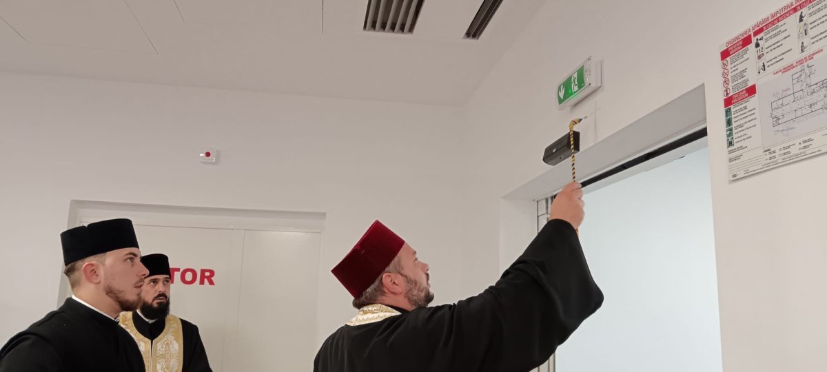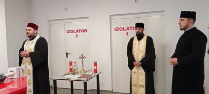 Evenimentul prilejuit de finalizarea lucrărilor a debutat cu o ceremonie religioasă de sfințire a noii clădiri oficiată de preotul spitalului, Iulian Raicovici, și preotul Ionuț Constantin, consilier social, delegat din partea Arhiepiscopiei Buzăului și Vrancei, cu binecuvântarea Arhiepiscopului Buzăului și Vrancei.