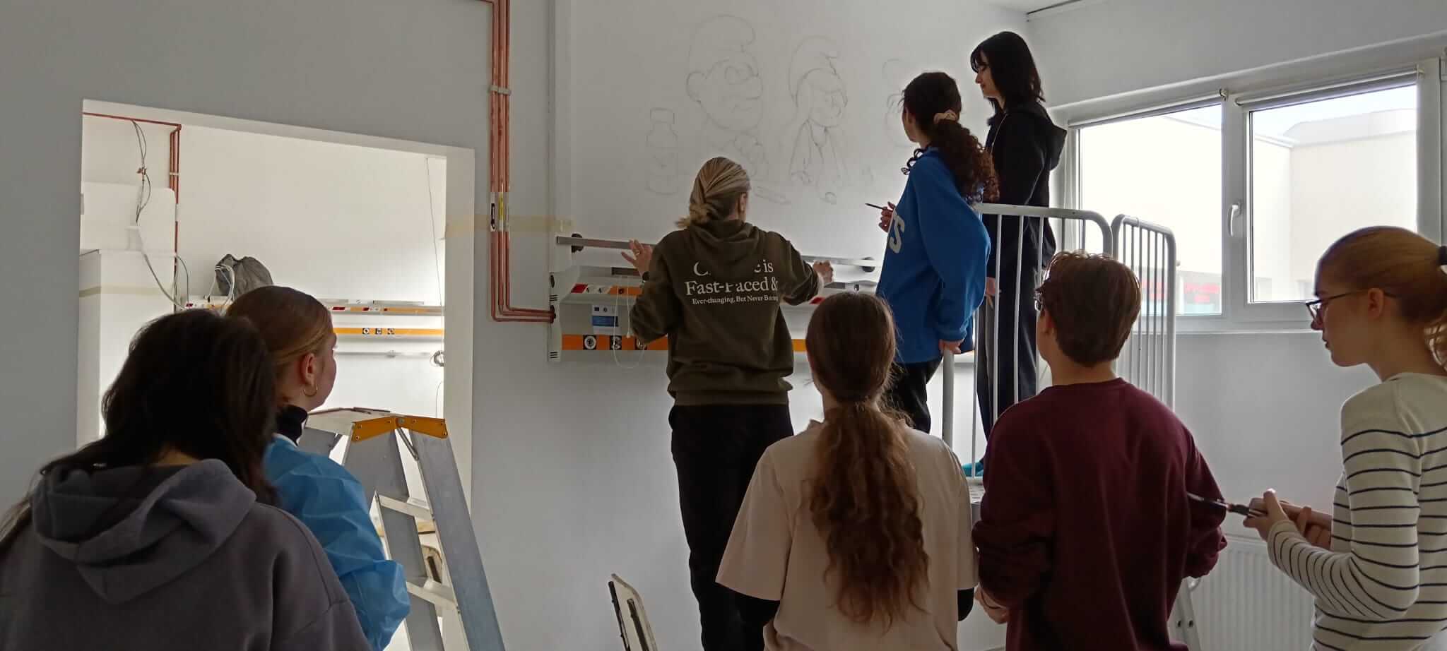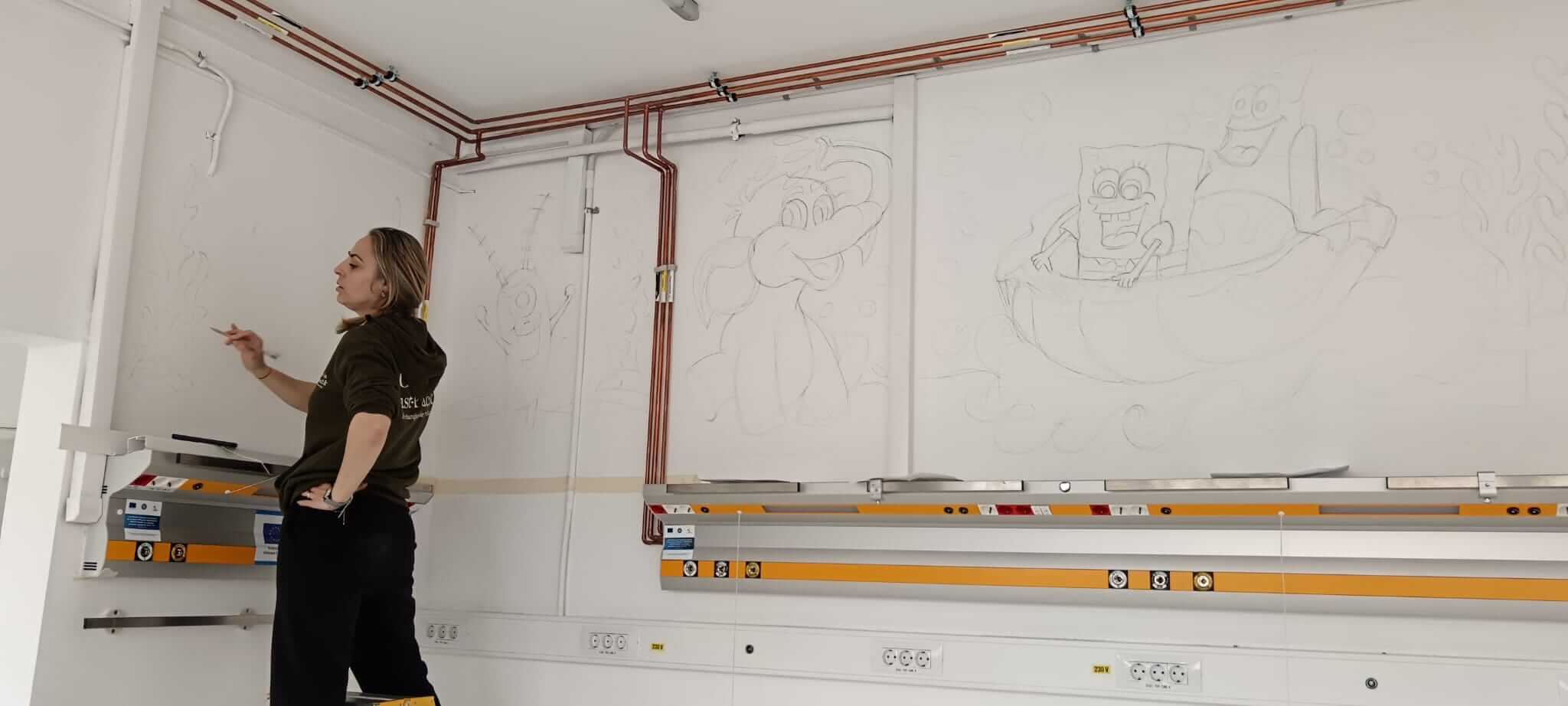 „Personajele sunt integrate în decorul medical, fiind însoțite de instrumente specifice – suficiente cât să bucure și să anime sufletul copilului. Ne dorim să transformăm spațiul într-un loc primitor, încărcat de energie pozitivă și emoție. Vom crea povești vizuale în cele trei încăperi ale U.P.U.-Pediatrie, cu personaje celebre, interconectate, chiar dacă provin din basme diferite. Elevii vor continua lucrările în orele de specialitate.”, a precizat prof. Ana-Maria Bogleș, coordonatoarea elevilor.