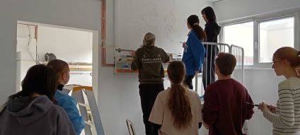 Astăzi, la Spitalul Județean de Urgență Buzău a avut loc o frumoasă acțiune de voluntariat. O echipă formată din 8 elevi ai Liceului de Artă „Margareta Sterian” Buzău, coordonată de doamna profesoară Ana-Maria Bogleș, a demarat activitatea de decorare a pereților din trei saloane ale secției U.P.U.-Pediatrie.