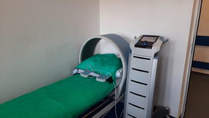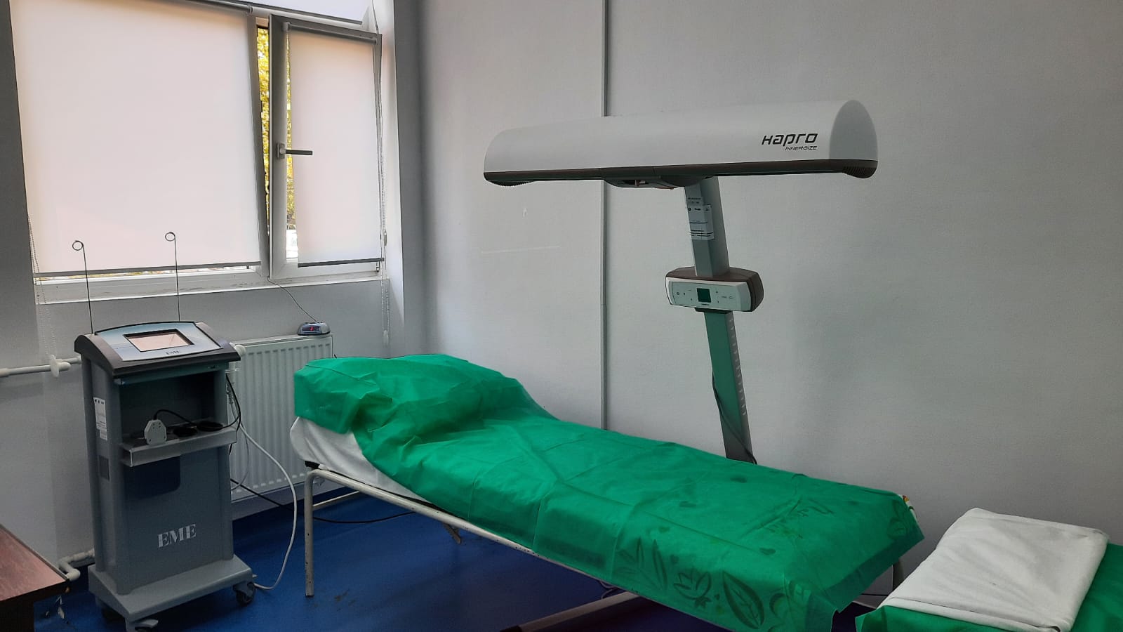 - Aparat electroterapie şi ultrasunete. Acest aparat oferă terapii cu medie frecvenţă, cu joasă frecvenţă. Cu acest aparat se efectuează proceduri specifice pentru diverse afecțiuni ale aparatului locomotor, de tip inflamator, degenerativ, posttraumatic sau neuromotor