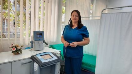 Dr. Ioana Nohai: „Cabinetul de Recuperare Medicală din cadrul Ambulatoriului cuprinde o gamă largă de aparatură clasică și de ultimă generație, care permite abordarea unui spectru larg de proceduri: Electroterapie, Masaj, Kinetoterapie, dar și parafina, unde scurte, magnetoterapie, terapie înaltă frecventa, laser terapie și terapie TECAR. Împreună cu asistentele medicale, As. Monica Roşu şi As. Crina Apostol, kinetoterepeutul Gabriel Grigore, şi maseurul, Cornel Iosif, formăm o echipă bine pregătită, empatică și gata să aline suferința pacienților care se adresează cabinetului de Recuperare Medicală.”