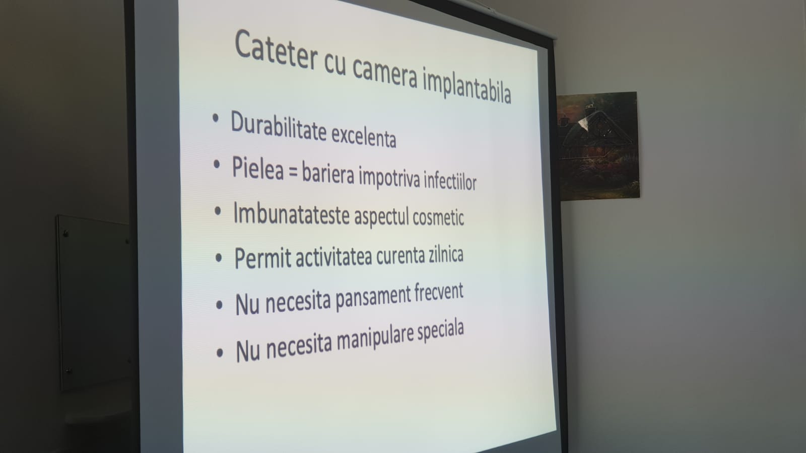 Demonstraţia practică în sala de operaţie (1 oră montarea unui cateter la un pacient, sub atenta observaţie a cursanţilor).