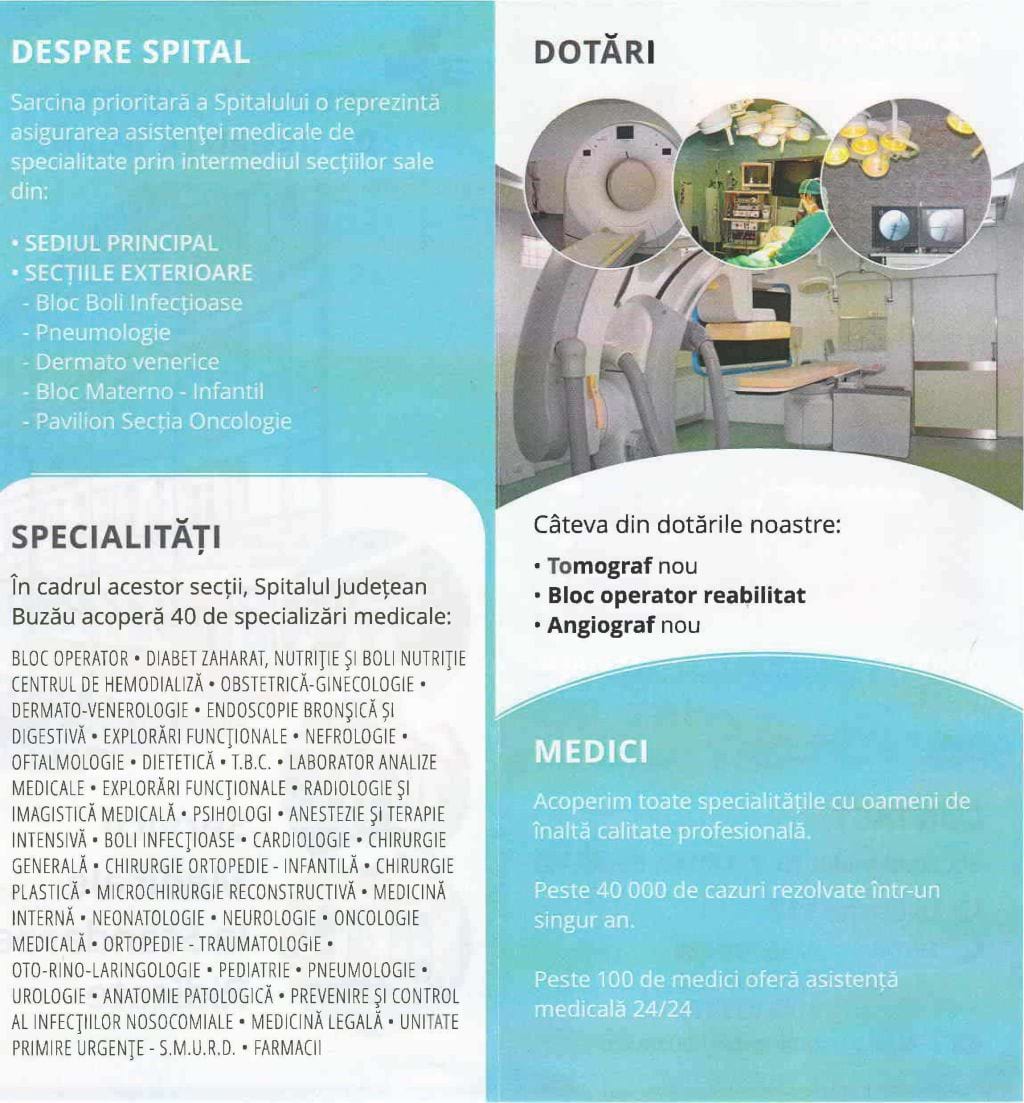 Secţiile și compartimentele Spitalului posedă autorizaţii sanitare de funcţionare eliberate de Direcţia de Sănătate Publică a Judeţului Buzău.