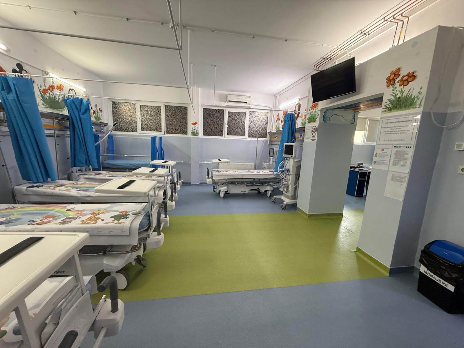 Reamenajarea sectorului a presupus recompartimentări, lucrări de reparații interioare, amenajarea grupurilor sanitare, înlocuirea pardoselii cu linoleum medical și decorarea pereților cu elemente grafice inspirate din povești.